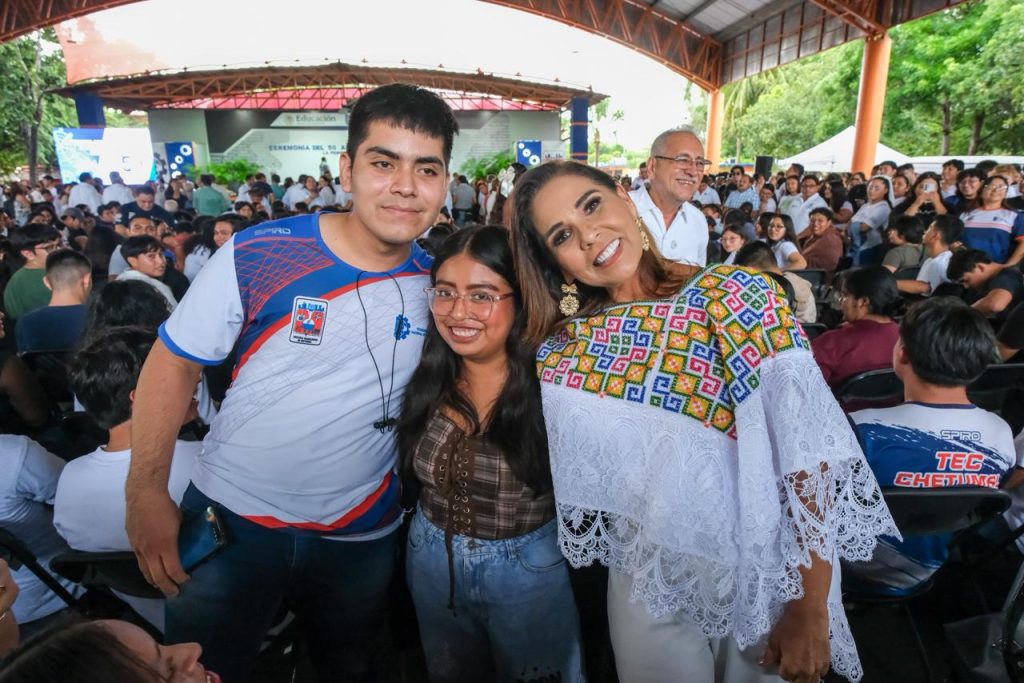 “El tecnológico de Chetumal nació con Quintana Roo y desde entonces estas aulas han sido cuna de sueños, de esperanzas. Aquí se han formado hombres y mujeres que levantaron empresas, construyeron instituciones, que han impulsado la ciencia, la tecnología, la cultura. Aquí nació el espíritu de una educación que cambia destinos”, expresó la titular del Ejecutivo.