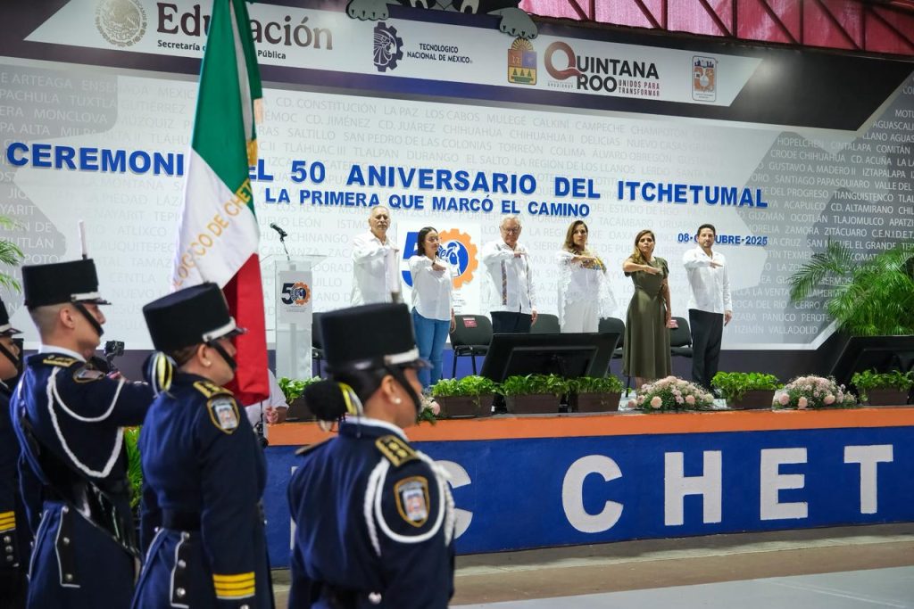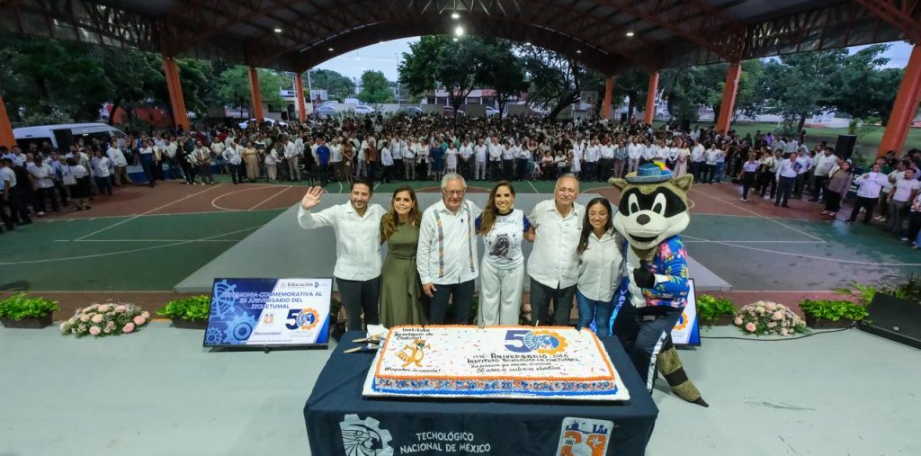 Chetumal.- Con la presencia de la gobernadora Mara Lezama Espinosa y el director general del Tecnológico Nacional de México, Ramón Jiménez López, el Instituto Tecnológico de Chetumal celebró su 50 aniversario de fundación, consolidándose como una de las instituciones de educación superior más emblemáticas del sur del país y pilar en la formación profesional de generaciones que han contribuido al desarrollo de Quintana Roo.