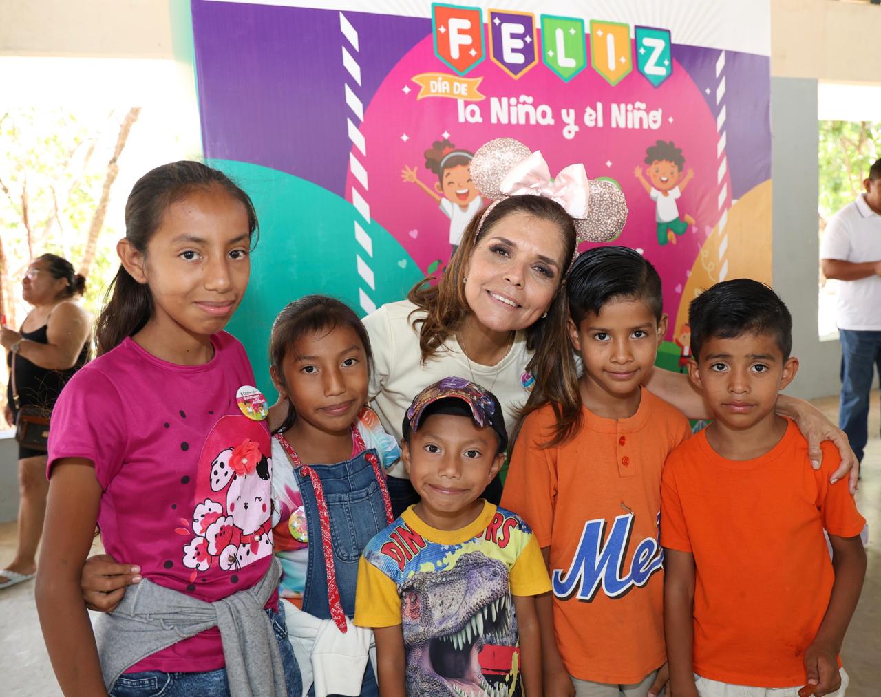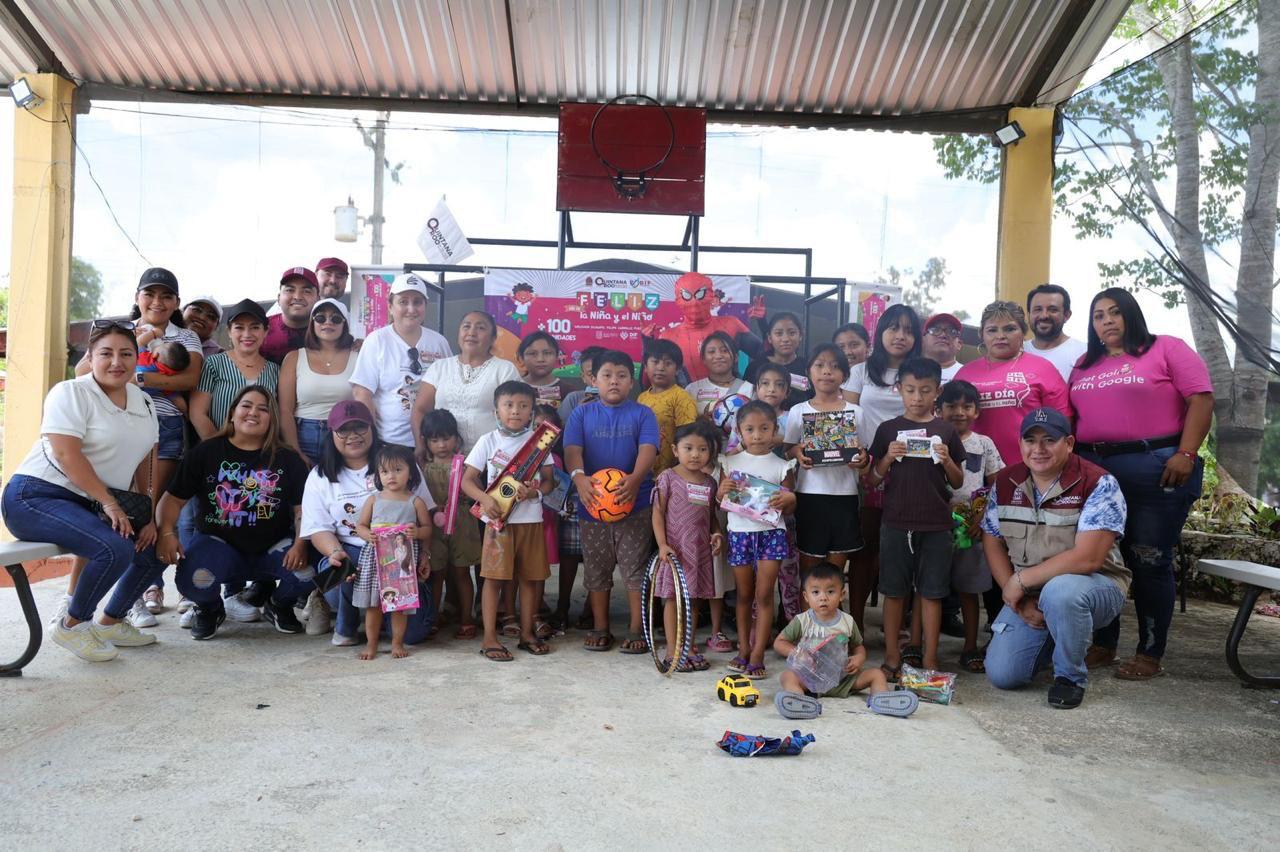 La presidenta honoraria del DIF Quintana Roo precisó que en las 100 comunidades se llevaron a cabo actividades lúdicas y reflexivas, para que las niñas y niños fortalezcan sus derechos, pero también para que se diviertan, sean felices y convivan en familia.