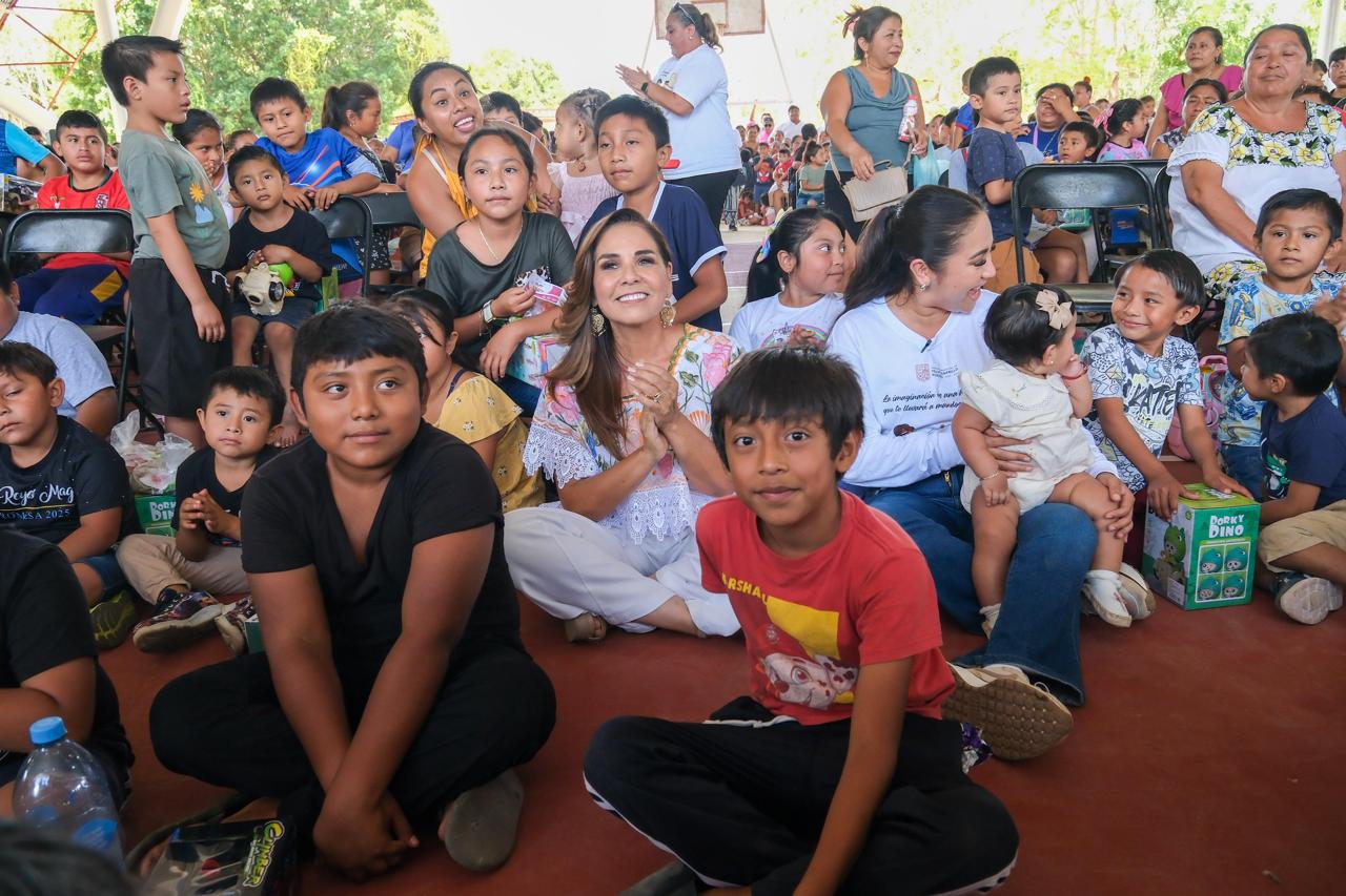 La gobernadora Mara Lezama convivió con niñas y niños, organizó la rifa de regalos, concursos, bailes y cantos.