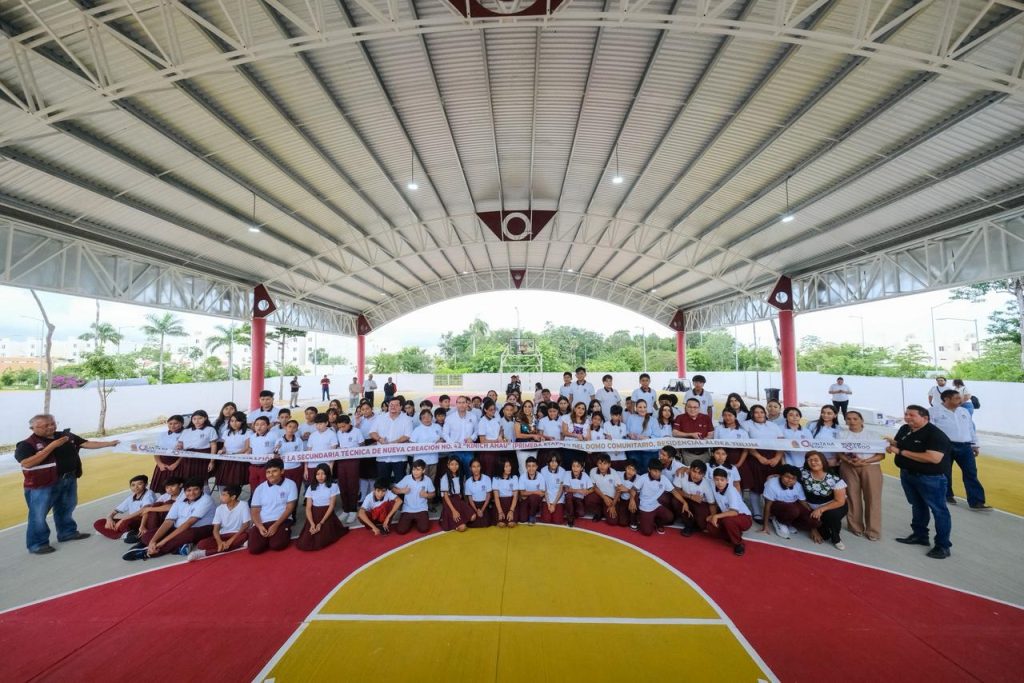 Tulum.- Al inaugurar la escuela Secundaria Técnica de Nueva Creación No. 42 “Kinich Ahau”, en su primera etapa, y el domo comunitario, en el residencial Aldea Tulum, la gobernadora Mara Lezama Espinosa expresó que este gobierno diferente seguirá fortaleciendo la educación pública porque ese es el camino al bienestar.