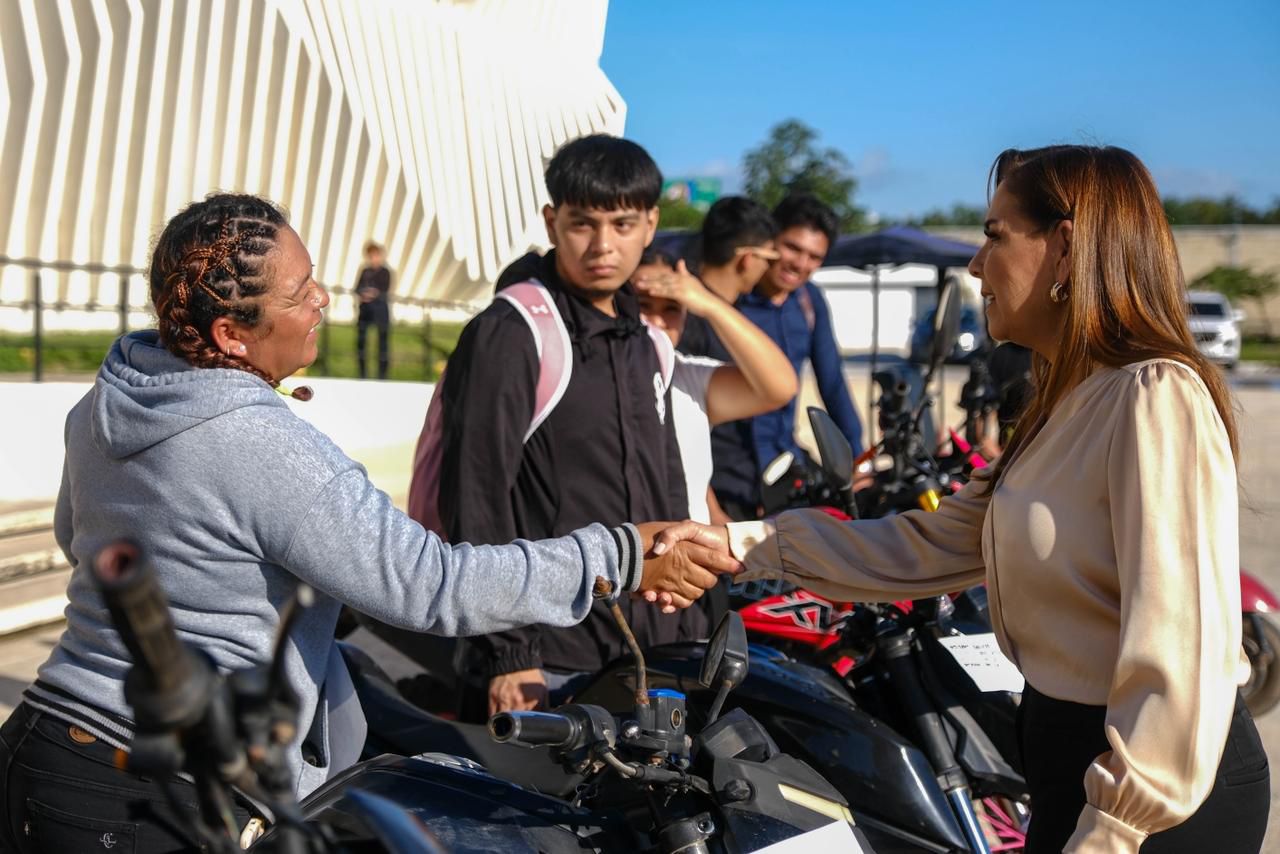 Cancún.- Durante una entrega más a sus legítimos dueños de 8 motocicletas y 1 mototaxi recuperados durante inspecciones en diversos filtros de seguridad, la gobernadora Mara Lezama Espinosa informó que se les apoyará para poner en orden sus documentos, puedan circular y hacer el reemplacado 2026 sin problemas.