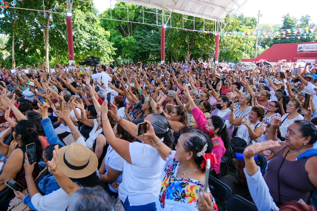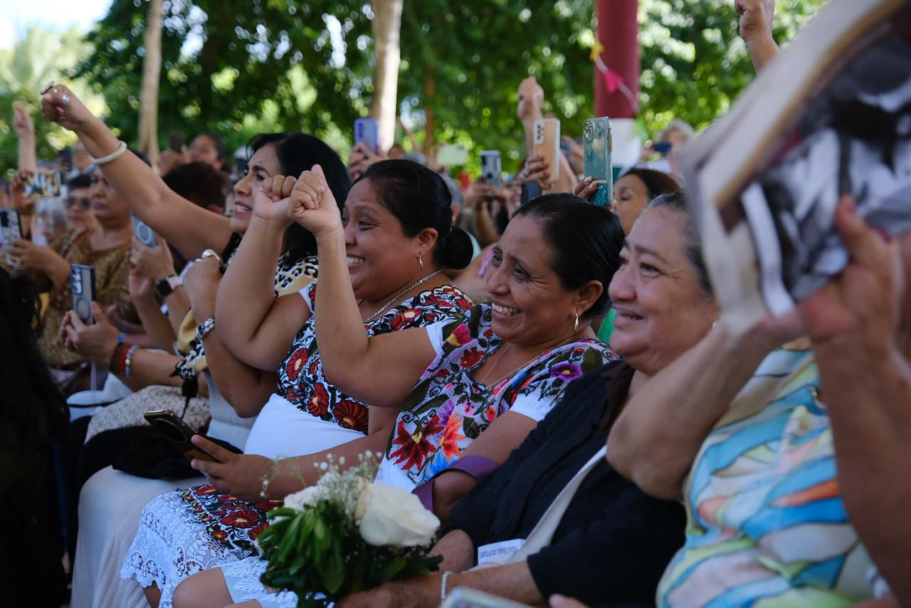 Puerto Morelos.- Durante la asamblea Pensión Mujeres Bienestar que encabezó la Presidenta Claudia Sheinbaum Pardo en Puerto Morelos, la gobernadora Mara Lezama Espinosa expresó el respaldo de todas y decirle que no está sola en la lucha por el empoderamiento de la mujer mexicana.