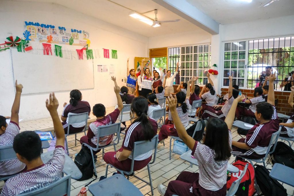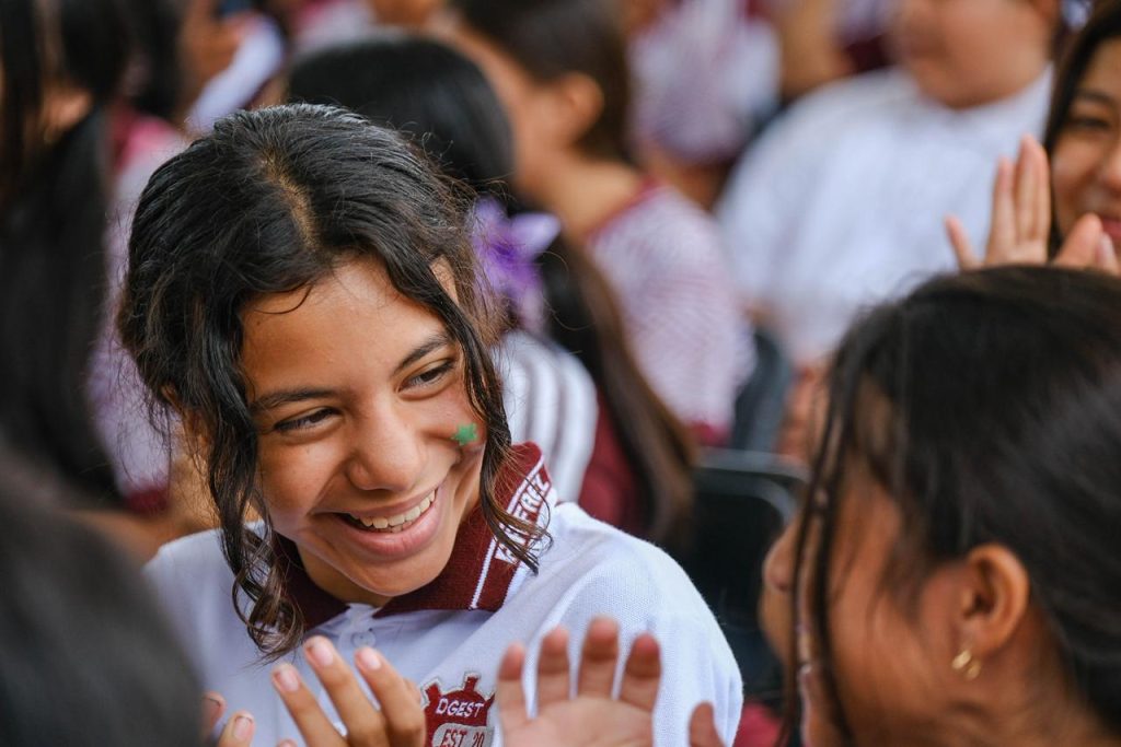 A su arribo, la titular del Ejecutivo recorrió los salones para saludar a las y los alumnos, para luego proceder a la ceremonia inaugural en la que se dio la oportunidad de cantarle “Las mañanitas” a Joshua, un alumno que cumplió años este día.