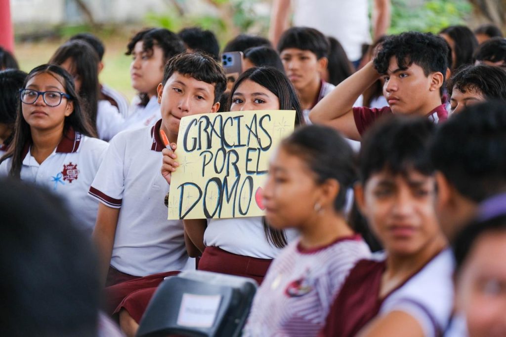 Durante la ceremonia de corte de listón inaugural, Mara Lezama dijo que se hizo este domo porque este gobierno humanista con corazón feminista quiere mucho a las y los adolescentes, jóvenes. Además, hubo de pasar 30 años para que esta escuela tenga su domo.