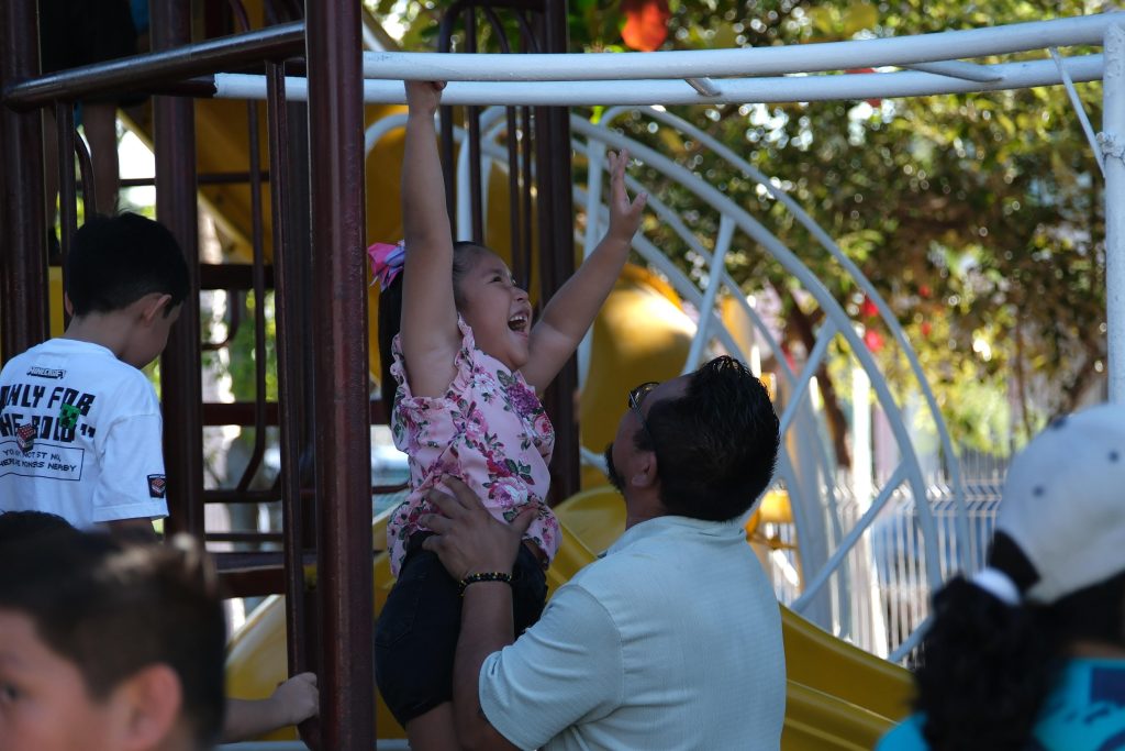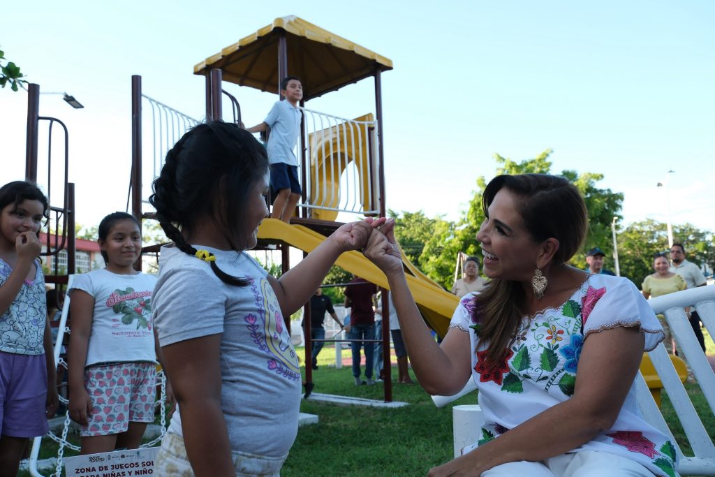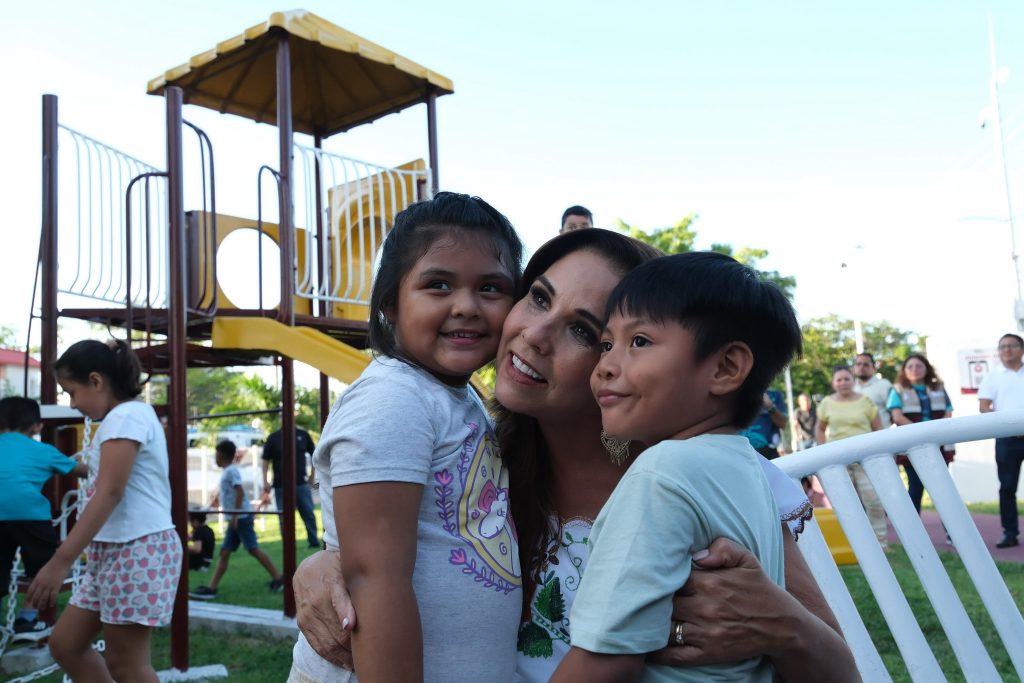 “Hacemos que estos espacios vuelvan a brillar para que las niñas, los niños, los adolescentes, las mamás, puedan tener un lugar seguro para la convivencia familiar, la construcción de comunidad y generar armonía social”, expresó la titular del Ejecutivo.