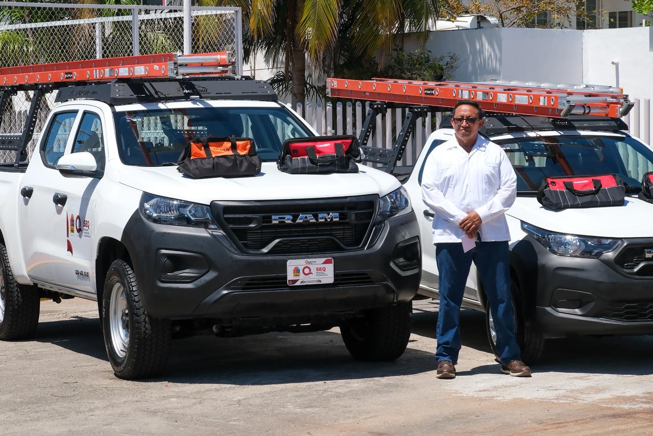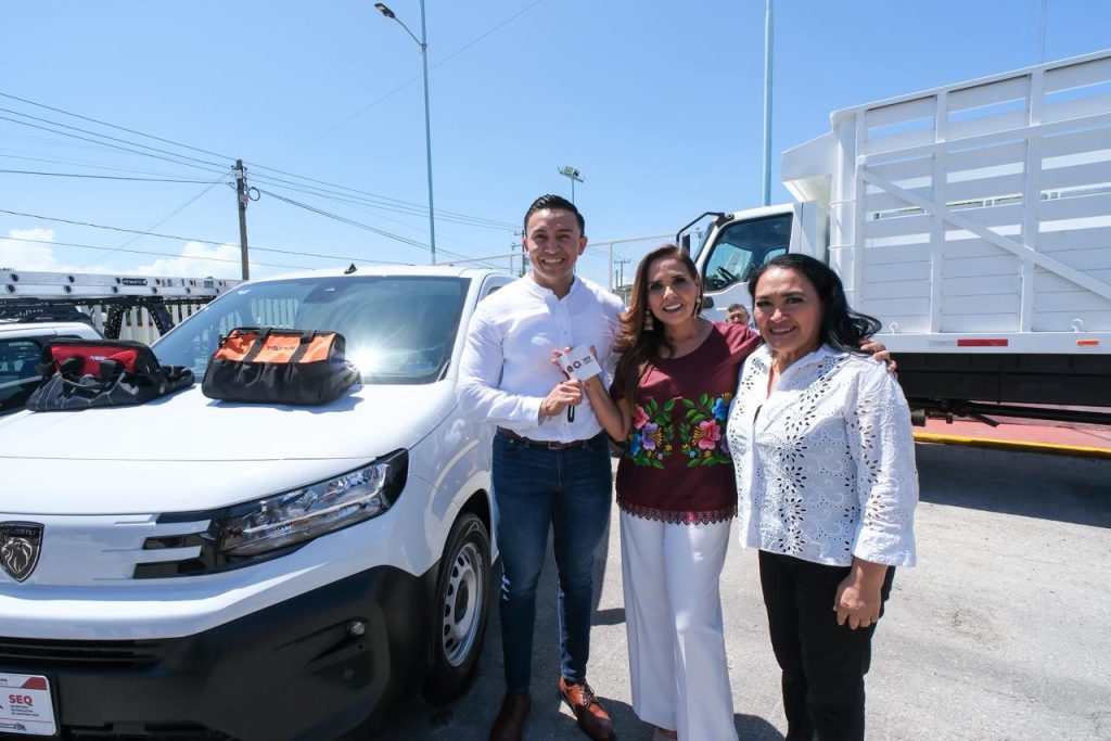 Chetumal.- Para fortalecer las brigadas de mantenimiento que atienden a escuelas de educación básica en todo el estado, la gobernadora Mara Lezama Espinosa entregó cinco vehículos nuevos y equipamiento, con inversión de 9.2 millones de pesos.