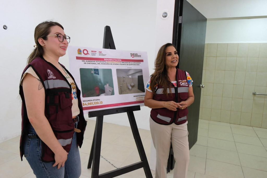 Chetumal.– La gobernadora Mara Lezama Espinosa dio a conocer los avances de la segunda etapa de rehabilitación del albergue estudiantil de Chetumal, a cargo del Instituto Quintanarroense de la Juventud (IQJ), en la que se ha realizado una inversión histórica superior a los 20 millones de pesos, sumando la primera y la segunda fase del proyecto.