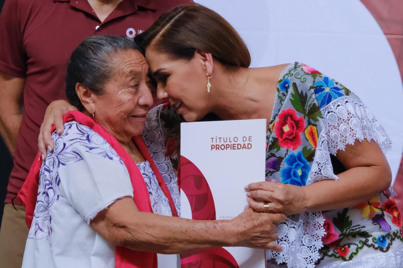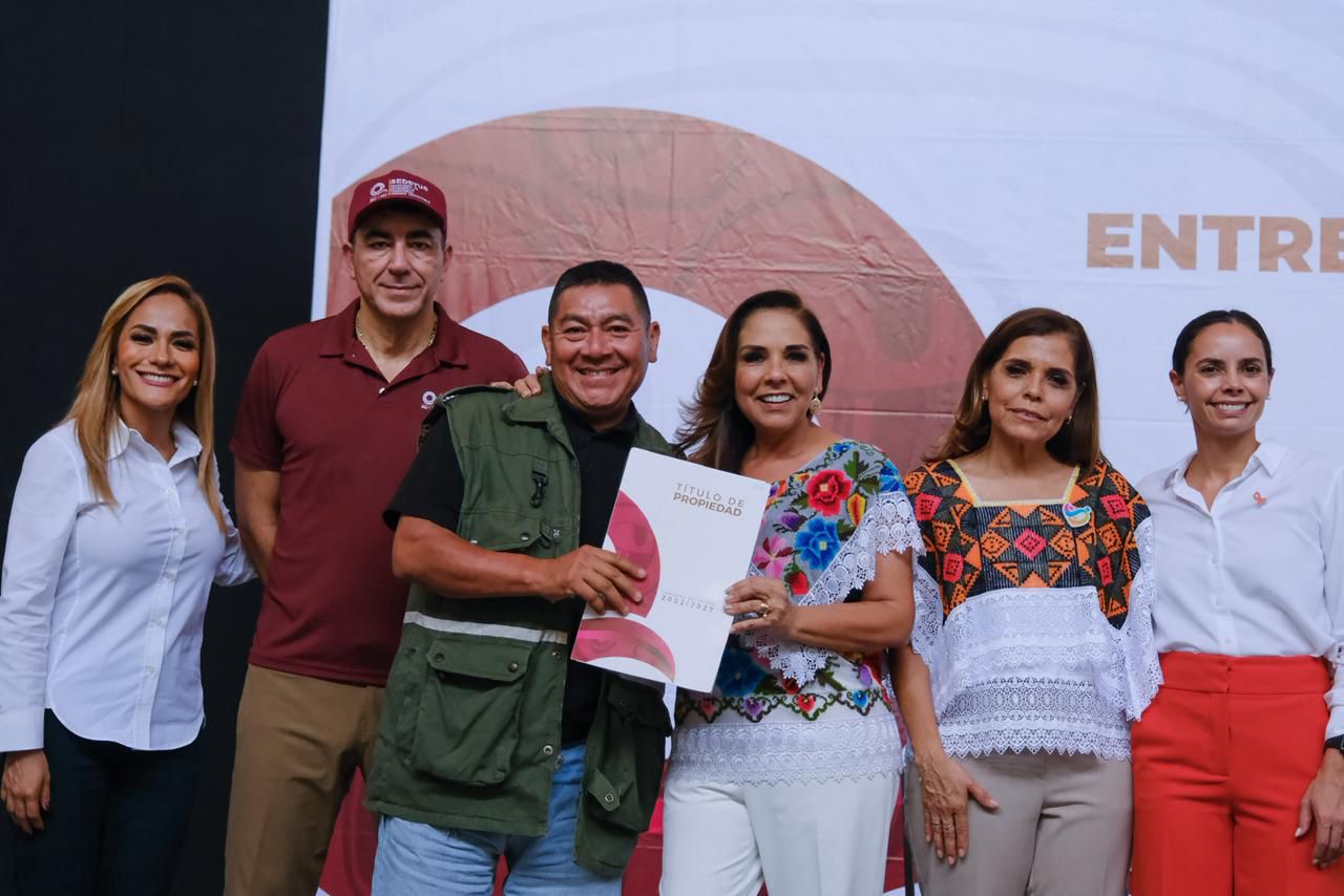 “Hoy nos convoca un motivo que toca lo más profundo del corazón: la entrega de 126 títulos de propiedad a familias quintanarroenses, documentos que no son sólo papeles, son historias, son certezas, son sueños que se consolidan, son la materialización de un derecho, que durante años les fue negado por los gobiernos neoliberales del pasado, pero que hoy, bajo esta visión humanista y con un gobierno cercano al pueblo, se convierte por fin en una realidad” explicó la Gobernadora.