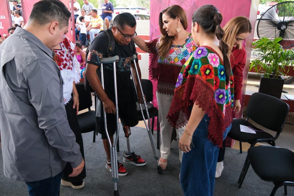 La primera persona en ser atendida fue la señora Karol Paloma Gómez Esquivel. Con la presidenta honoraria del Sistema DIF Quintana Roo, Verónica Lezama, se entregaron prótesis a beneficiarios de Kantemó, San Diego y Dziuché, de José María Morelos.