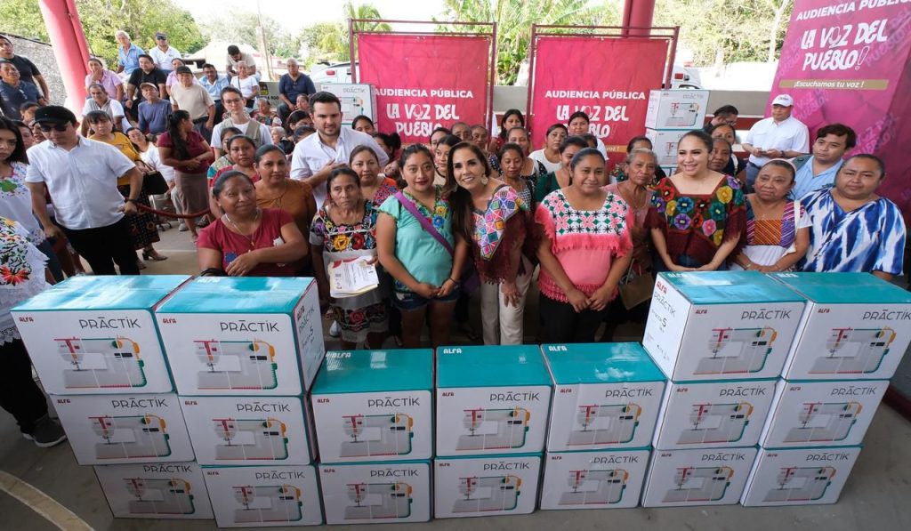 Asimismo, para responder en directo y en territorio, la gobernadora Mara Lezama acompañada del secretario de Bienestar, Pablo Bustamante, entregó 31 máquinas de coser a beneficiarios de 7 comunidades de Carrillo Puerto, lo que permitirá fortalecer su economía familias.
