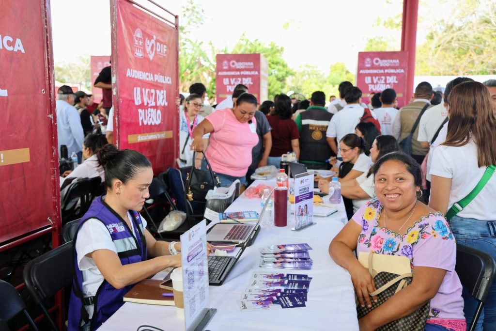 X-Pichil.- En esta comunidad maya de Felipe Carrillo Puerto, en donde la artesanía es el motor de la economía de mujeres y hombres, la gobernadora Mara Lezama Espinosa encabezó la audiencia pública “La Voz del Pueblo”, que ya es un espacio de atención directa en el que dependencias estatales, federales y municipales escucharon y atendieron las solicitudes de las personas, centro de las políticas públicas.