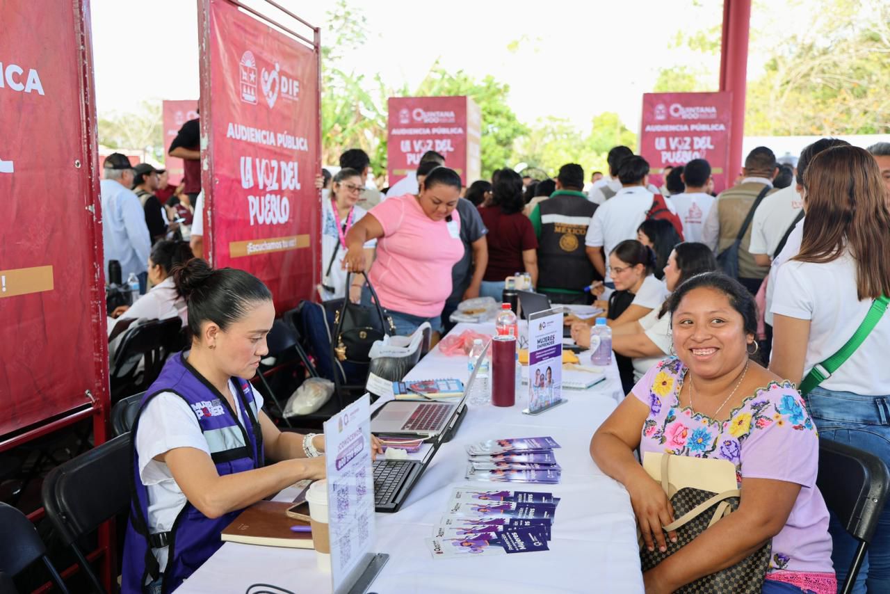 En la audiencia participaron integrantes del gabinete estatal, así como representantes de dependencias federales y autoridades municipales de Felipe Carrillo Puerto, encabezadas por su presidenta Mary Hernández, quienes atendieron a la ciudadanía de manera personal en mesas de trabajo instaladas en el lugar.