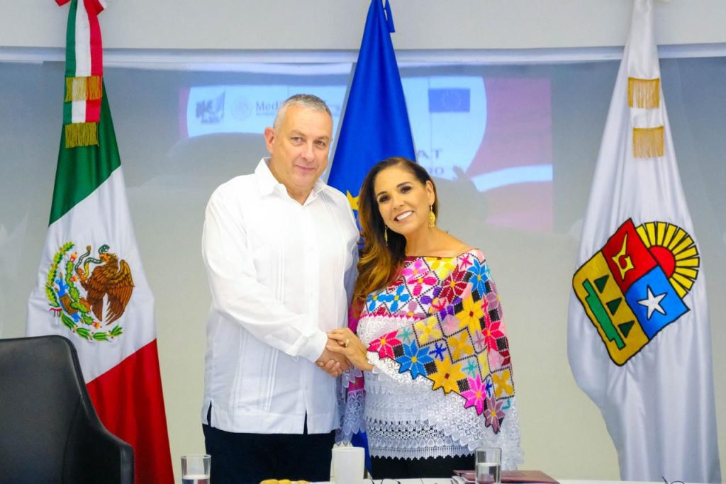 Cancún.– La gobernadora Mara Lezama Espinosa sostuvo un encuentro con el Comisario Europeo Josef Síkela y el secretario de cambio climático y desarrollo de SEMARNAT José Luis Samaniego Leyva, con el propósito de fortalecer los lazos de cooperación internacional en materia de economía circular y aprovechamiento sostenible del sargazo.