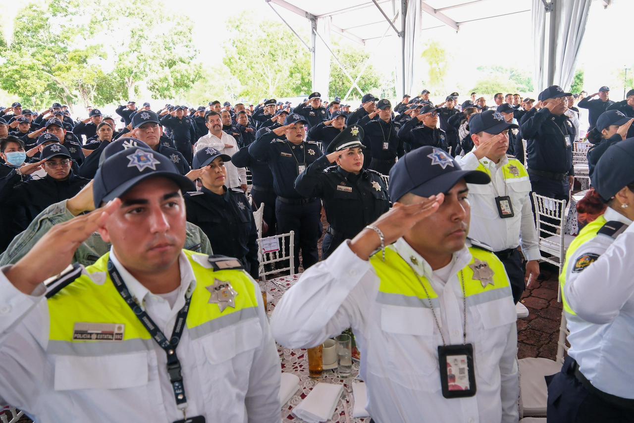 Para elevar el estándar, se impulsó el Servicio Profesional de Carrera Policial con reglas claras, ascensos por mérito y con formación constante, y se reconoce a hombres y mujeres que han hecho la diferencia.