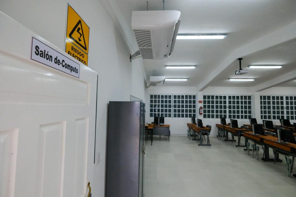 Por su parte el titular del Instituto de Infraestructura Física Educativa de Quintana Roo (IFEQROO), Aldo Andrés Castro Jiménez, explicó que el taller de cómputo es una construcción de 183 metros cuadrados con obra exterior y red eléctrica, completamente equipado con 42 mesas de cómputo, 42 sillas apilables, 43 computadoras, un gabinete metálico, impresora láser, proyector, dos cestos metálicos, extintores, señalización en edificio, así como mobiliario especializado para el docente.