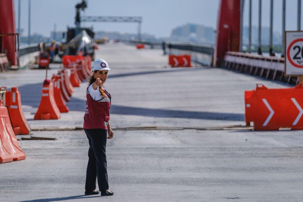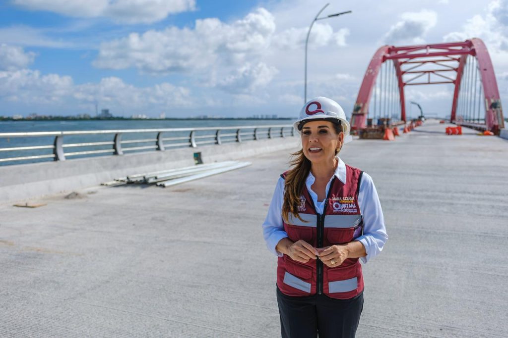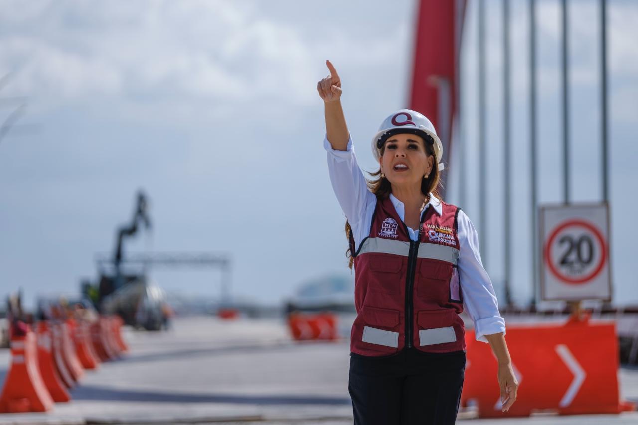 Cancún.- La gobernadora Mara Lezama Espinosa dio a conocer que el Puente Nichupté se encuentra prácticamente concluido, con un avance superior al 92 por ciento, y estimó que a finales de enero de 2026 podrá ser abierto al público para su uso de manera completamente gratuita.
