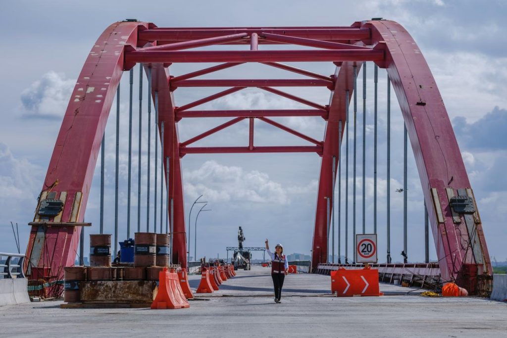 “Se trata de un puente de 8.8 kilómetros de longitud que, junto con sus entronques, supera los 11 kilómetros, y que contará con tres carriles de circulación”, recalcó Mara Lezama.