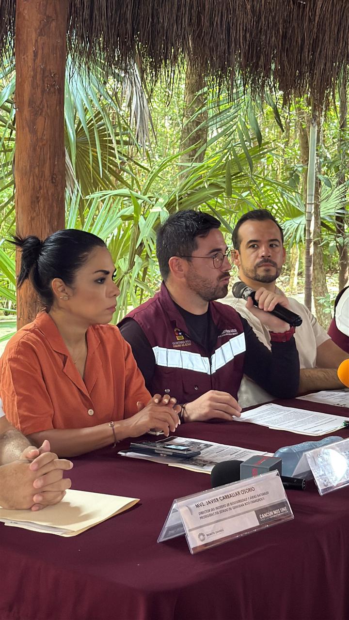 Acompañaron al secretario en el presídium: Nahielli Margarita Orozco Lozano, secretaria Municipal de Ecología y Desarrollo Urbano; Javier Carballar Osorio, titular del Instituto de Biodiversidad y Áreas Naturales Protegidas (IBANQROO); Fernando Haro Salinas, director general de Ecología del Municipio de Benito Juárez y Pablo Rubio Taboada, director de Áreas Naturales Protegidas.