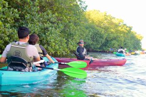 La actividad se realizó en kayak, permitiendo a las y los voluntarios recorrer zonas de difícil acceso y retirar residuos que afectan gravemente al manglar. Durante la jornada se levantaron latas, botellas de plástico y, sobre todo, varias líneas de pesca, uno de los desechos más peligrosos para la biodiversidad, ya que pueden enredar y lastimar a aves, peces y reptiles que habitan en este ecosistema.