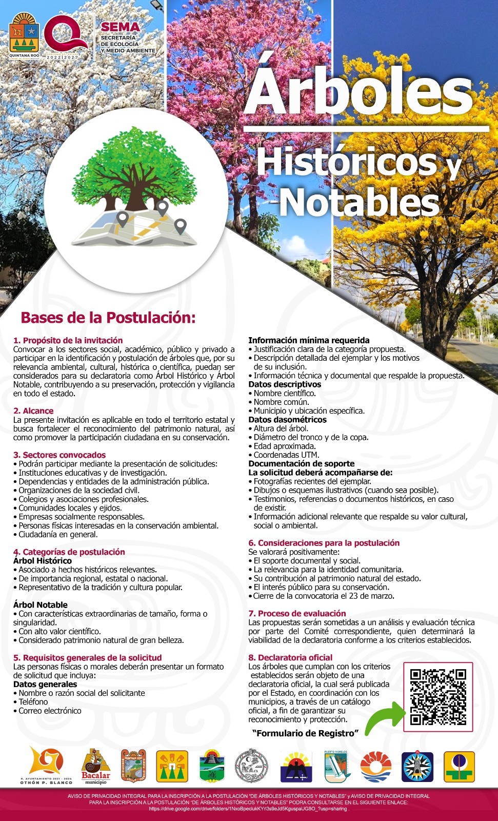 Óscar Rébora detalló que los interesados en postular un árbol deberán ingresar al enlace: https://peim-arbolado.semaqroo.gob.mx/arboles-historicos-y-notables/ donde encontrarán la convocatoria de manera detallada, así como el link para realizar la inscripción.