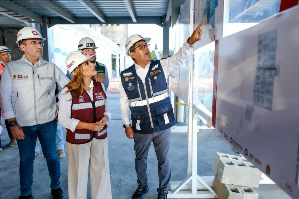 Chetumal.- La gobernadora Mara Lezama Espinosa y el secretario de Salud, Flavio Carlos Rosado, realizaron una visita de supervisión a la obra del nuevo Hospital General de Chetumal, donde constató el avance físico de este proyecto estratégico en materia de salud, que beneficiará a más de 270 mil habitantes del sur del estado.