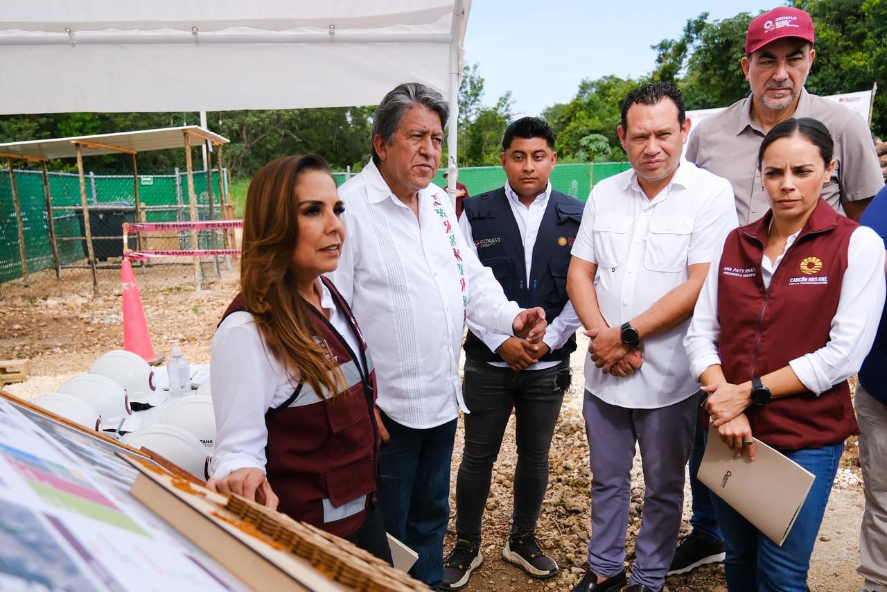 Cancún.- Acompañada del titular de la Comisión Nacional de Vivienda (CONAVI), Rodrigo Chávez Contreras, la gobernadora Mara Lezama Espinosa recorrió y supervisó el predio en donde inició la construcción de las primeras mil 216 Viviendas para el Bienestar, en Cancún, destinadas a jefas de familia, madres solteras, adultos mayores, personas con discapacidad o pertenecer a una comunidad indígena.